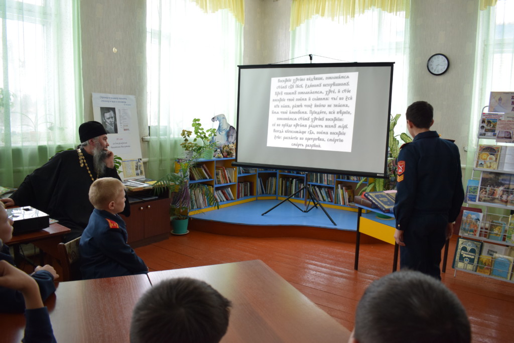У кадетов Моргаушской СОШ праздник «День православной книги»прошел в два этапа. Первый этап прошел в школе 13 марта. Кадеты сами подготовили сообщение о истории книгопечатания в России и рассказали его своим одноклассникам. Через неделю (20 марта), в детской районной библиотеке, прошел второй этап. Руководитель КМЦ «Надежда» Егорова А. В. рассказала об особенностях православной книги в современном мире. Православная литература призвана не только повлиять на ум и расширить кругозор читателя, не только обратить его внимание на круг тех или иных отвлеченных от жизни вопросов, но прежде всего, ввести читающего в духовный мир вечной истины и красоты. Затем настоятель храма Владимирской иконы Божией Матери с. Моргауши, иерей Феодор Ягушов поведал слушающим, о том какие книги используются в Богослужении православной церкви и кратко описал их. Все эти книги были представлены вниманию присутствующих. Так же иерей Феодор Ягушов рассказал об азах чтения на церковно-славянском языке: особенностях употребления букв, титлов, изображения чисел. Некоторые учащиеся и классный руководитель попробовали прочитать различные тексты на церковно-славянском языке.